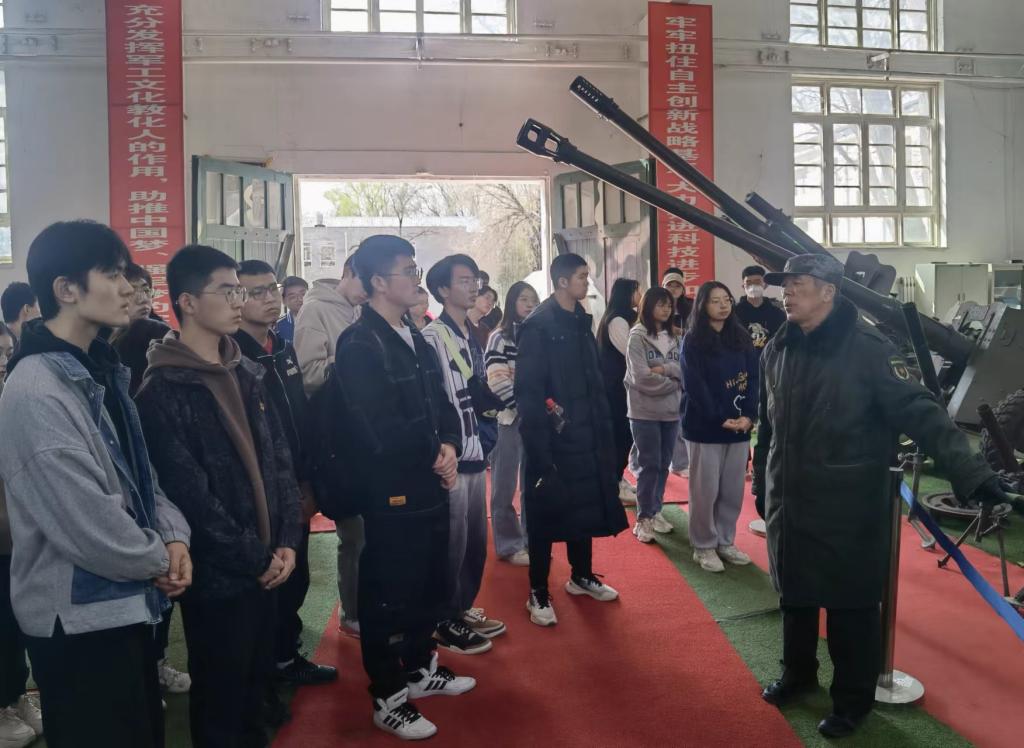 活动第二站是中北大学炮库。炮库是我校军工文化园的一部分,是我校爱国主义教育基地,更是我校最为鲜明的特色。负责讲解的葛双喜老师和刘佳文同学身姿端正,目光有神,用慷概激昂的语调为我们介绍一门门火炮。它们有的在战场上屡立奇功,有的曾一战成名,有的为我国火炮武器型号弥补了空白……或许在现代战场上很难再寻到它们的身影,但葛老师铿锵有力的话语告诉了我们:它们代表着那一段段不能遗忘的历史!一门门火炮用它们挺拔的身姿向我们传达着一个民族的坚强意志,一段不可磨灭的艰难记忆,一种不屈不挠的奋斗精神。