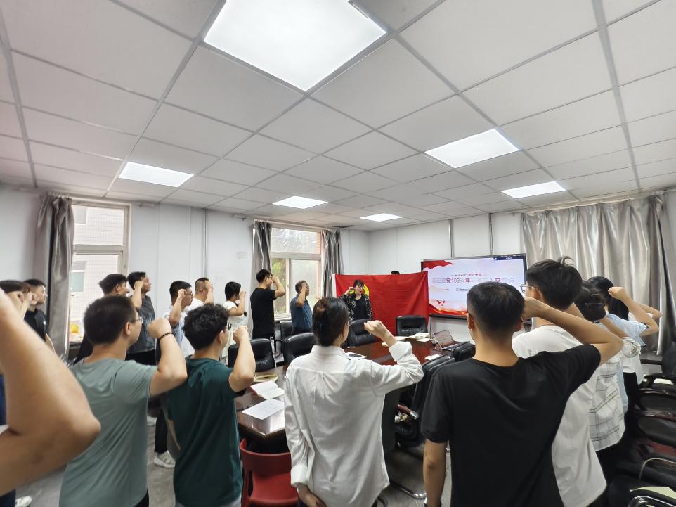 专题党课结束后,支部书记董蓓蓓同志带领全体党员重温了入党誓词,共同迎接和庆祝建党103周年。