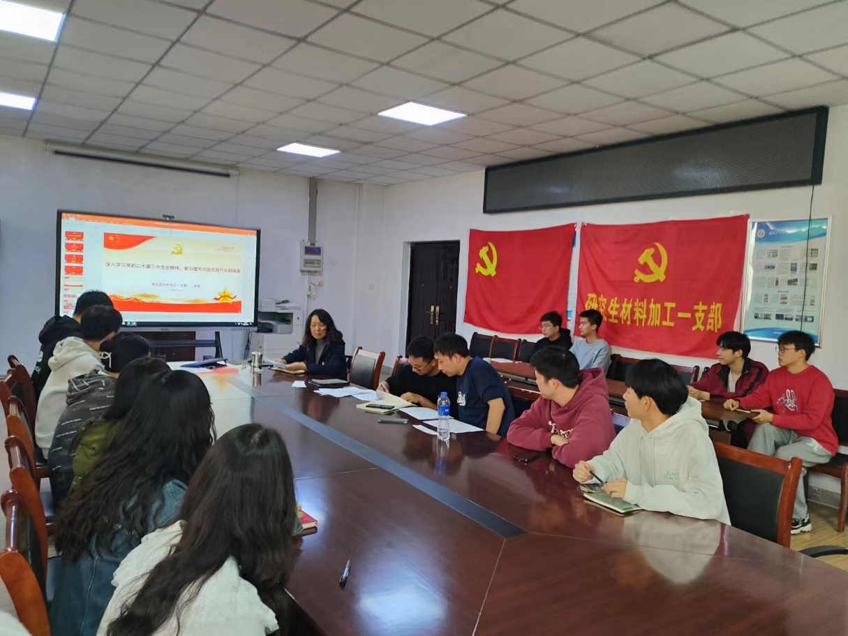 10月12日,研究生材料加工一支部在14号楼液态成型中心会议室召开会议,主题为“深入学习党的二十届三中全会精神,奋力谱写中国式现代化新篇章”。本次会议由党支部书记李艳同志进行学习宣讲,支部全体党员参加此次学习。