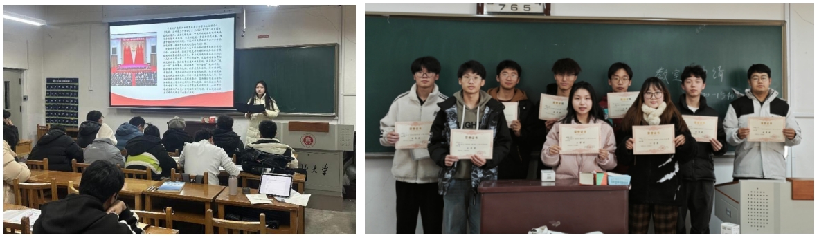 比赛结束后,褚老师为获奖选手颁发了荣誉证书和奖品,并鼓励支部成员要继续深入学习党的二十届三中全会精神,将学习成果转化为推动个人成长和学院发展的强大动力。